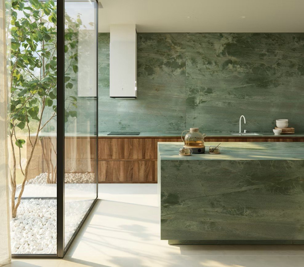 Itara – tai braziliškas Verde Esmeralda kvarcitas . Ryškiai baltos ir smėlio spalvos gyslos, išsidėsčiusios vandeningoje žalioje, audringą jūrą primenančioje aplinkoje, daro jį puikiu virtuvės ir vonios kambario stalviršių deriniu.