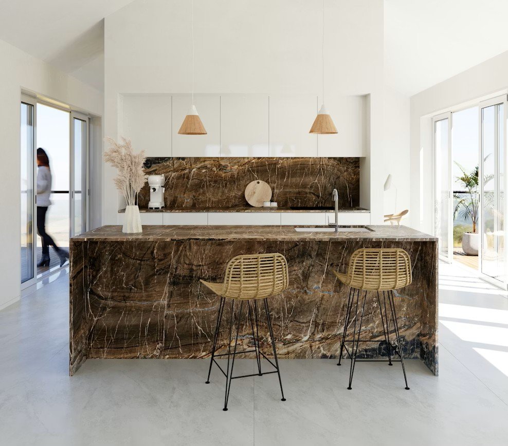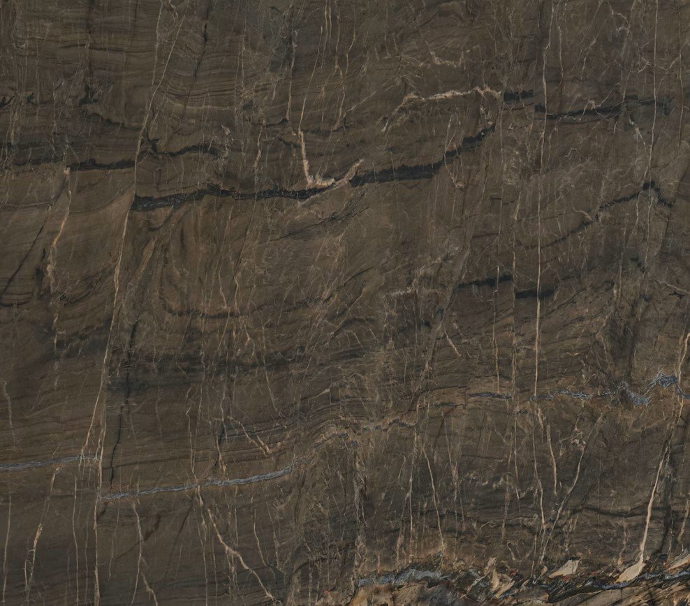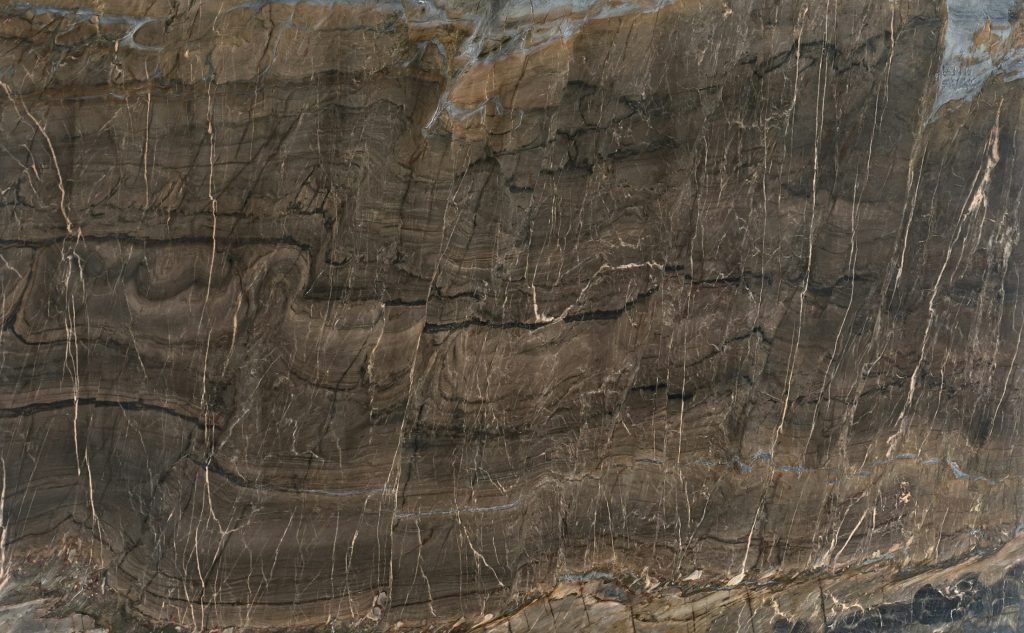 Nahoa, tai unikalus braziliškas kvarcitas rudu fonu ir juodomis bei smėlio spalvos gyslomis, einančiomis per jį.